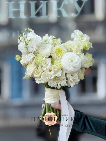 Букет невесты с белыми ранункулюсами