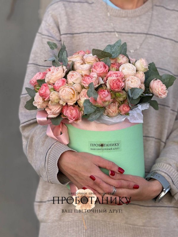 Композиция с кустовыми розами от флористов цветочного пространства "ПРОБОТАНИКУ".