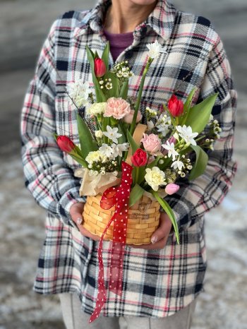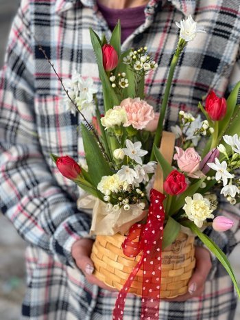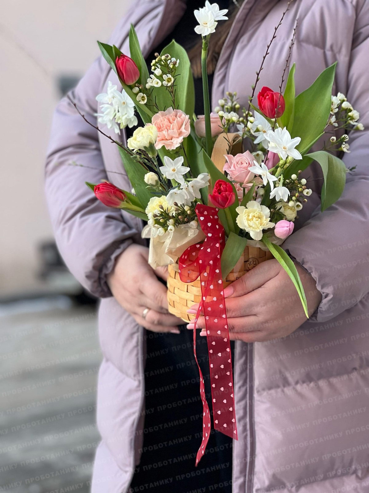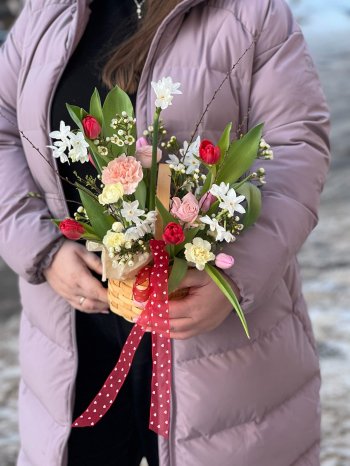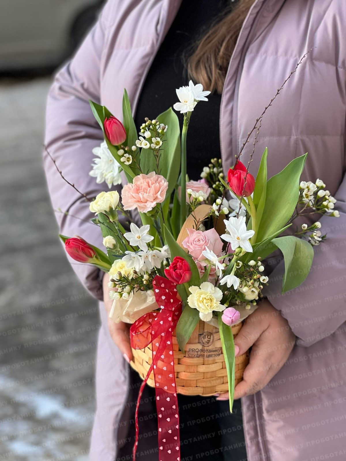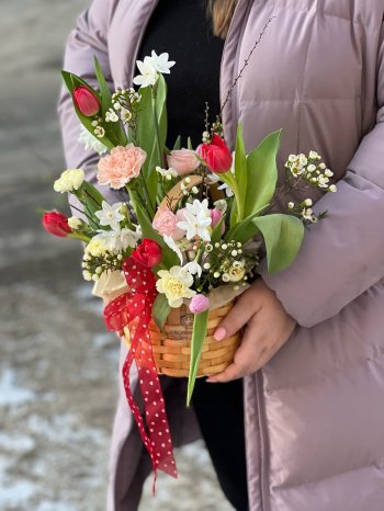 Композиция с тюльпанами и кустовыми нарциссами от цветочном пространстве ПРОБОТАНИКУ.