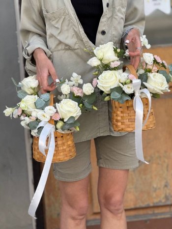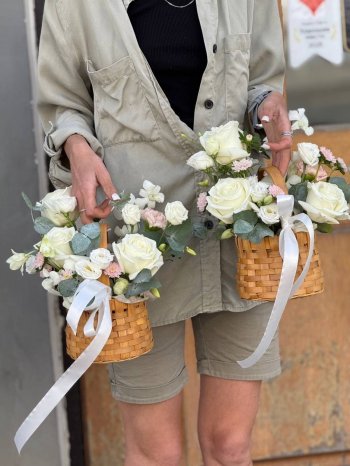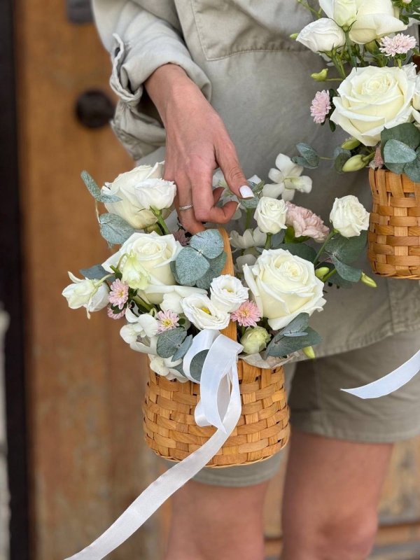 Композиция в корзинке с белыми розами от флористов цветочного пространства "ПРОБОТАНИКУ".