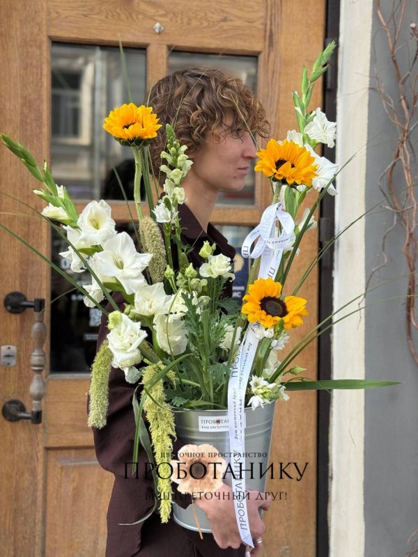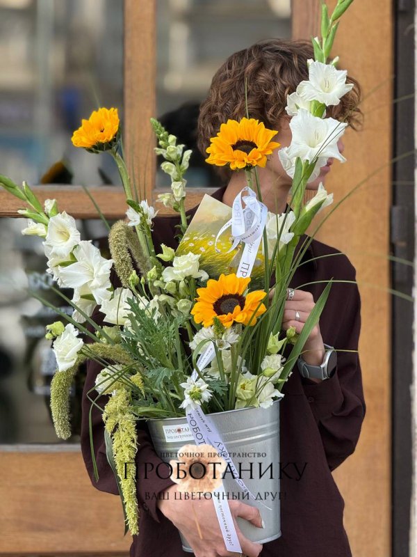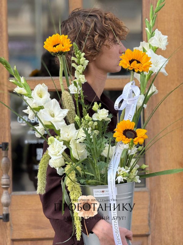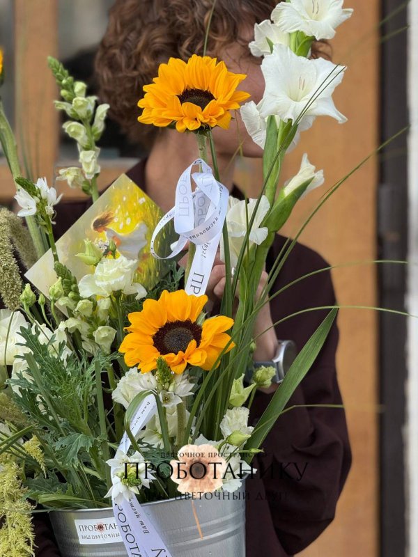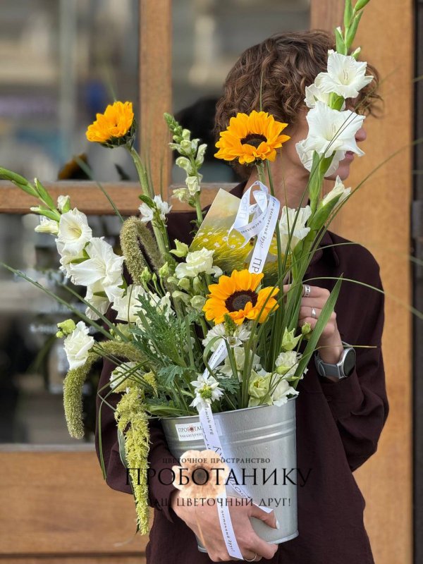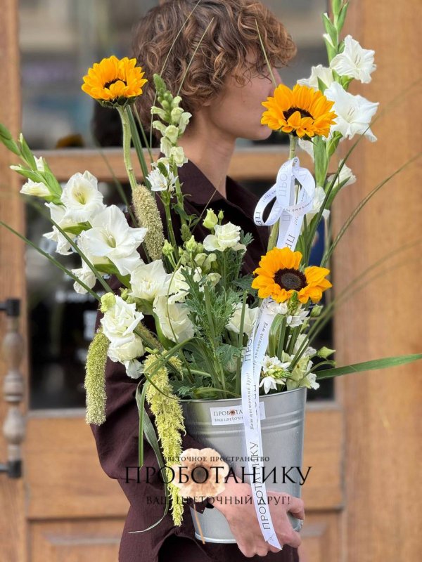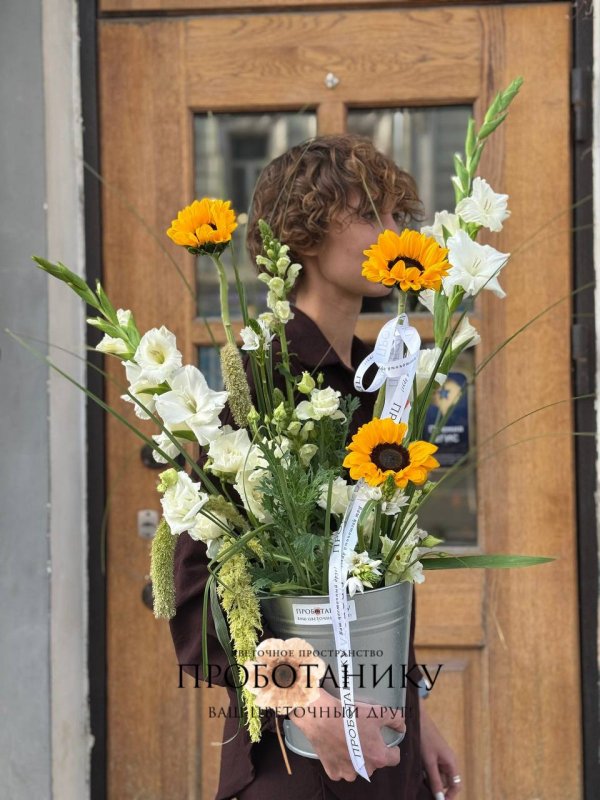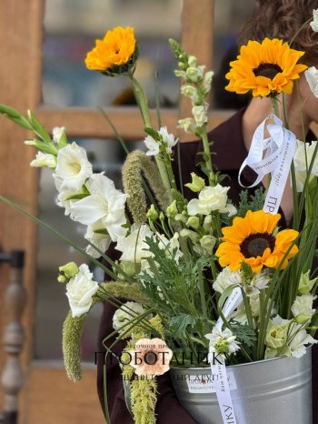 Композиция в оцинкованном ведерке от флористов цветочного пространства "ПРОБОТАНИКУ".