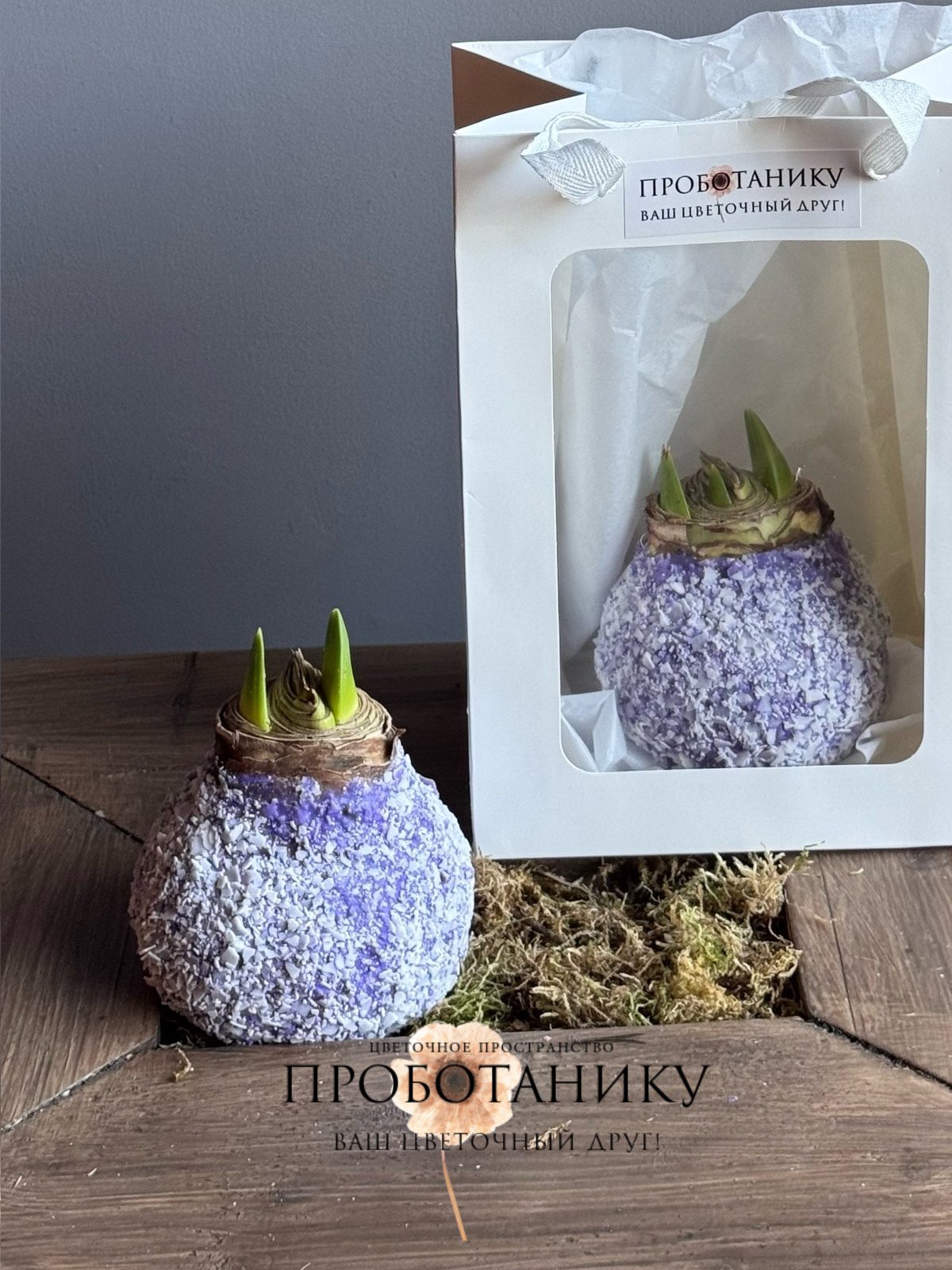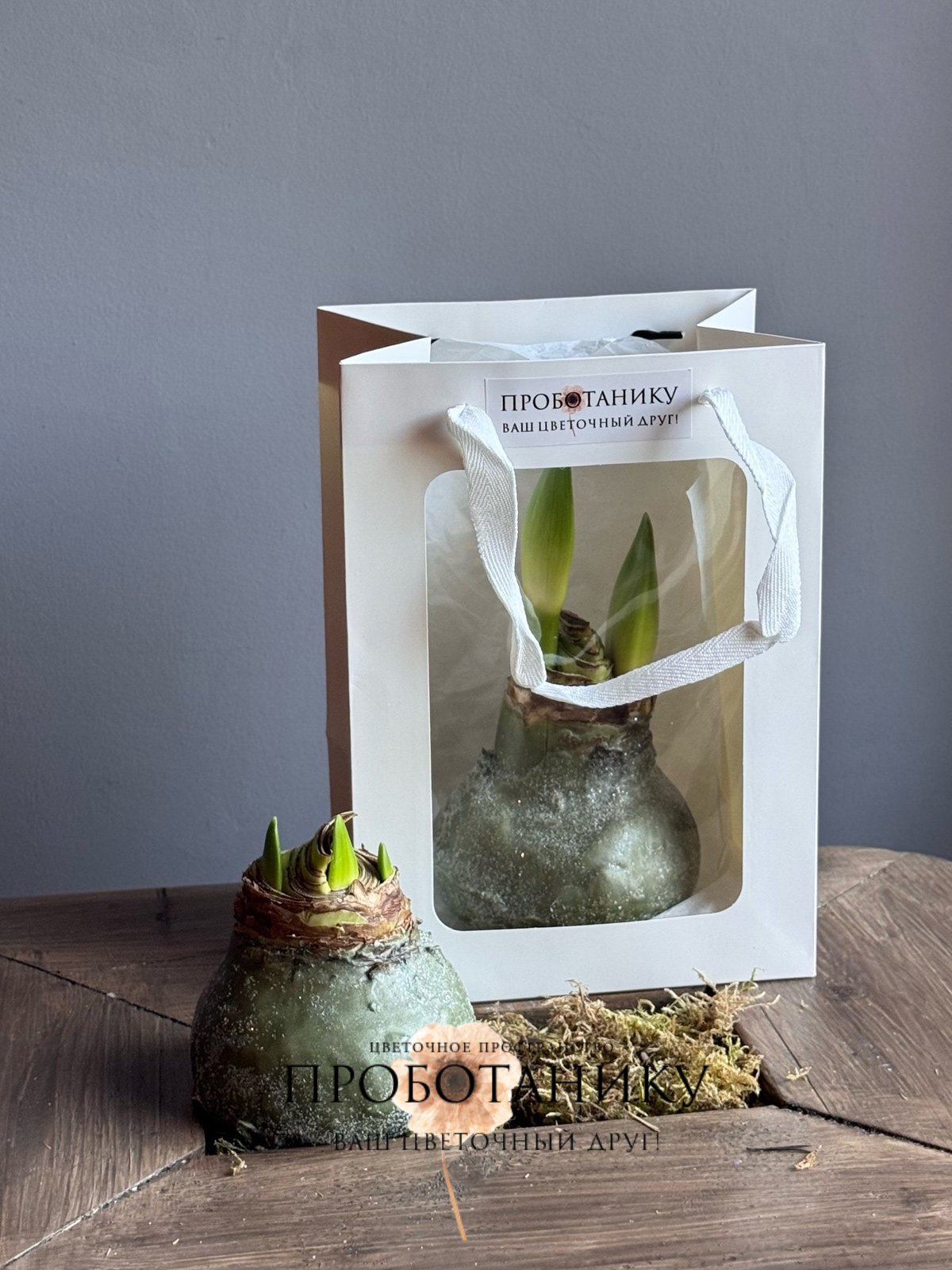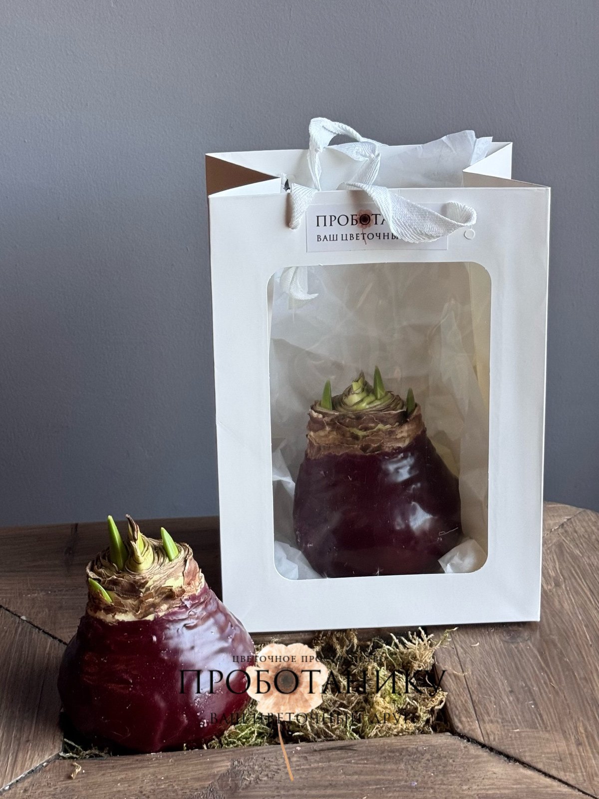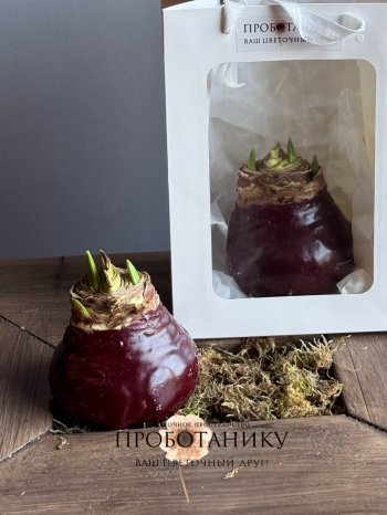 Луковица амариллиса в воске в подарочном пакете, в ассортименте от флористов цветочного пространства "ПРОБОТАНИКУ".