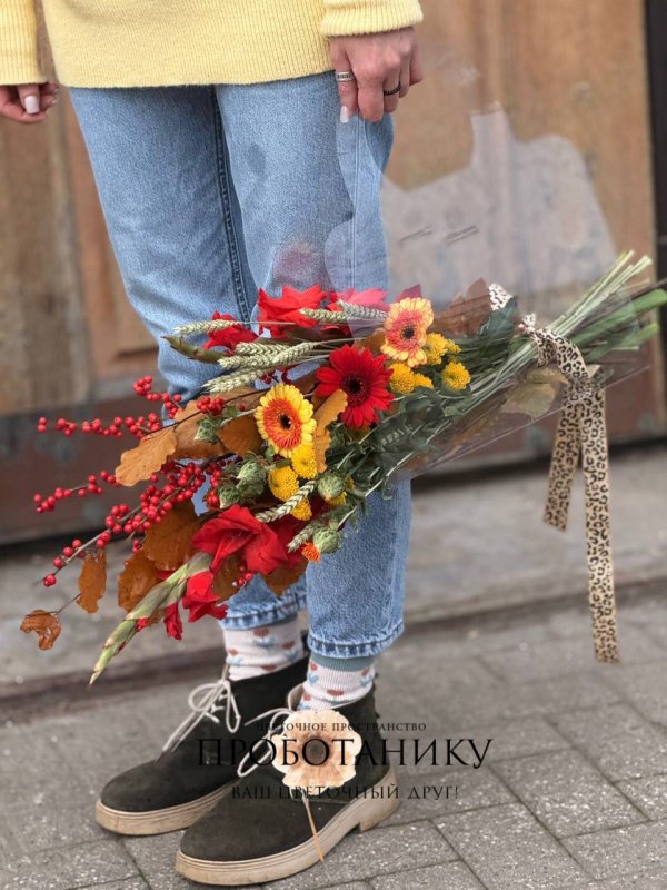 Букет с ярким осенним миксом от флористов цветочного пространства "ПРОБОТАНИКУ".
