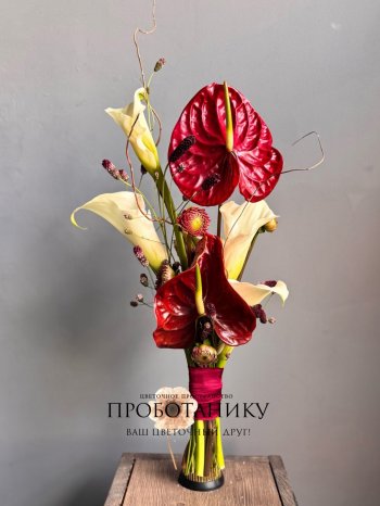 Букет с фиолетовыми гладиолусами от флористов цветочного пространства "ПРОБОТАНИКУ".