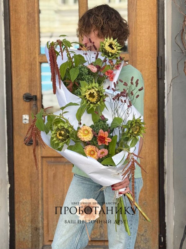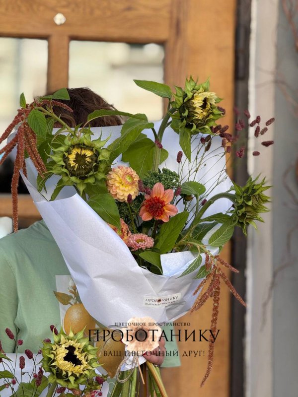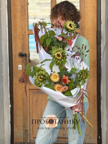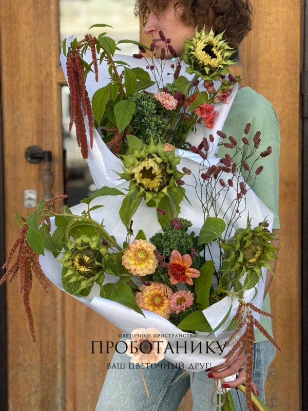 Букет с зелеными подсолнечниками от флористов цветочного пространства "ПРОБОТАНИКУ".