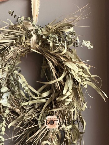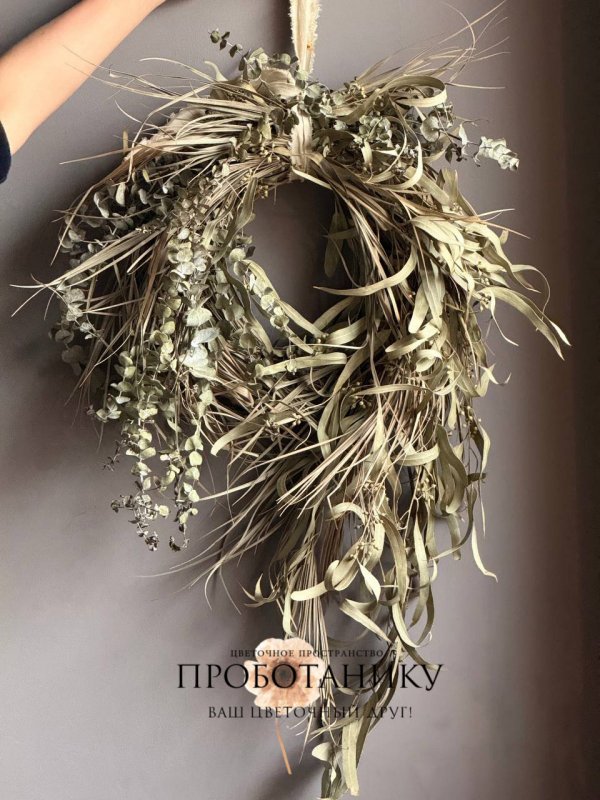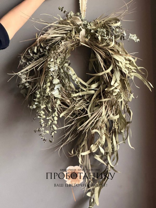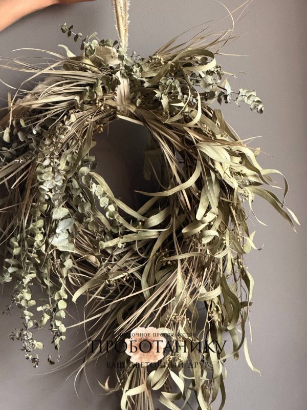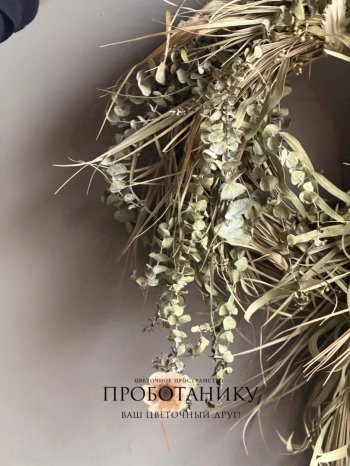 Декоративное украшение с эвкалиптом на дверь от флористов цветочного пространства "ПРОБОТАНИКУ".