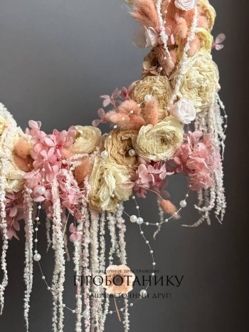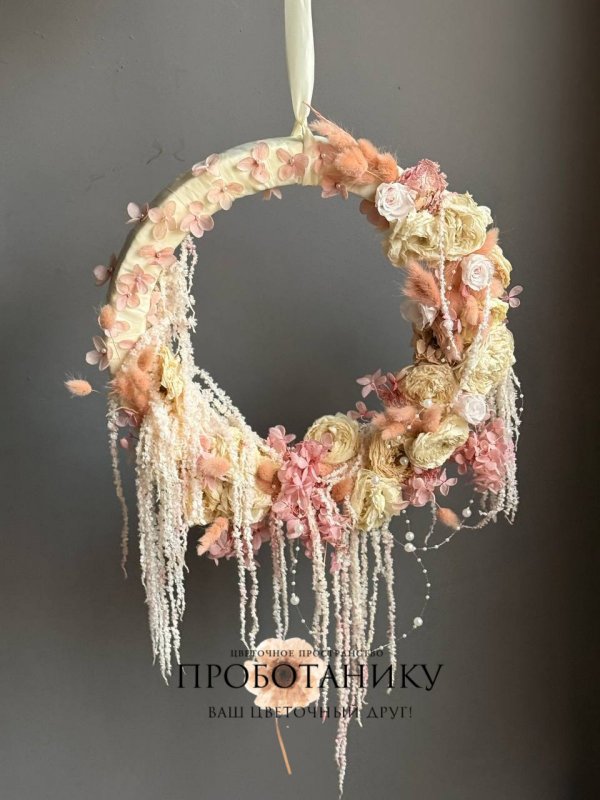Декоративное украшение с стабилизированными розами на дверь от флористов цветочного пространства "ПРОБОТАНИКУ".