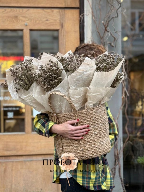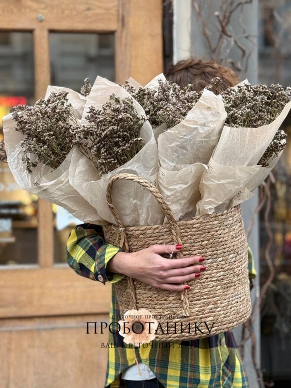 Кулек с сухим лимониумом в крафт от флористов цветочного пространства "ПРОБОТАНИКУ".